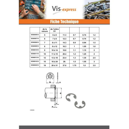 | DIAMETRE EXTERIEUR ANNEAU | 6.3 | 7.3 | 9.3 | 11.3 | 12.3 | 14.3 | 16.3 | 18.8 | 20.4 | 23.4 | 29.4 | 37.6 |