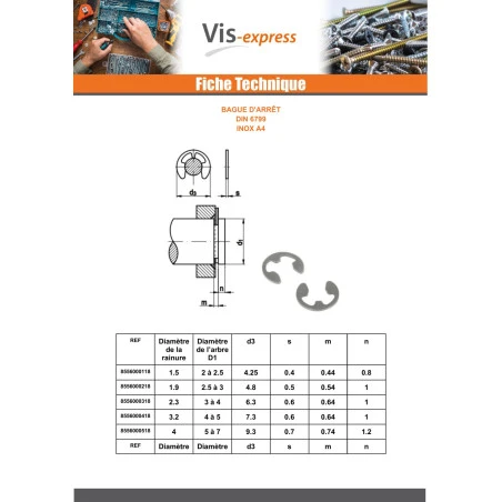 | DIAMETRE INTERIEUR ANNEAU | 2.3 | 3.2 | 4 | 5 | 6 | 7 | 8 | 9 | 10 | 12 | 15 | 19 |