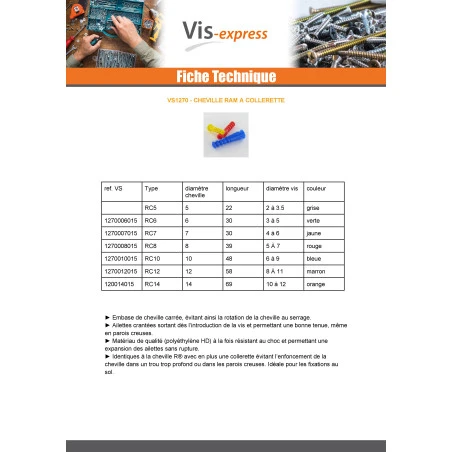 UGS : DMLZL 471 Catégories : Cheville ancrage, Cheville Collerette RAM RC, Cheville Plastique