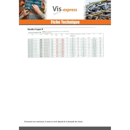 Cheville Clou Tête plate 8X45