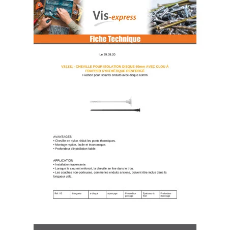 Cheville d »isolation 10X180 et Clou SYNTHETIQ