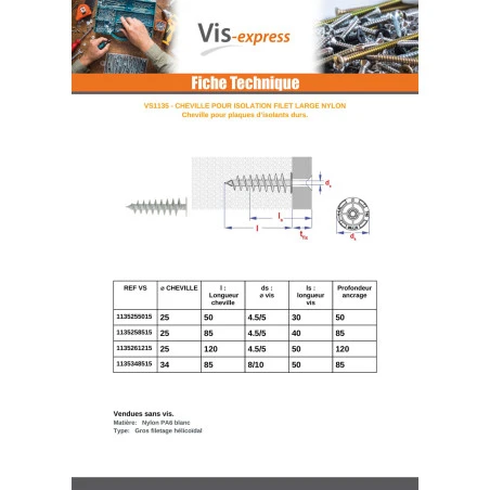 UGS : DMLZL 384269 Catégories : Cheville ancrage, Cheville d isolation Filetage GROS, Fixation pour isolants
