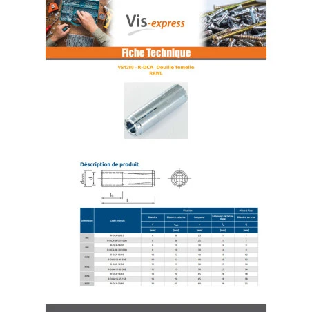 Cheville NUGGET RAWL Acier zingué 8X30 Autre références : R DCA 08 30 CFM8 942602 942602 CHEVILLE_M83 942602