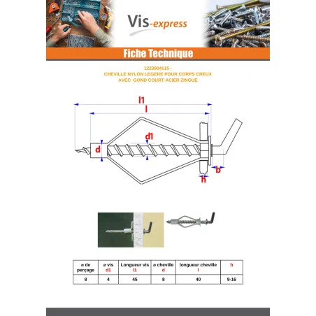 UGS : DMLZL 384345 Catégories : Cheville ancrage, Cheville Nylon Avec Vis bois Tête fraisée TF, Cheville pour plaque de plâtre