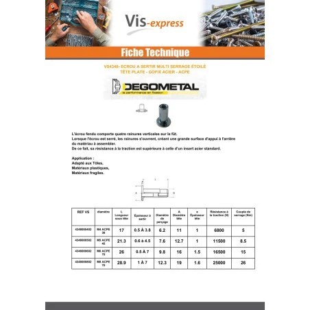 Ecrou à sertir ETOILE GOFIX M5 Acier zingué ACPE Autre références : 171 805 401
