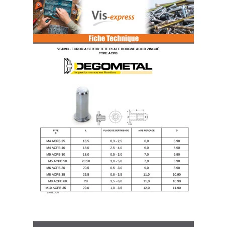 UGS : DMLZL 42818 Catégories : Acier brut, Ecrou, Ecrou à sertir et Goujon A sertir, Écrou à sertir Tête plate TP Borgne ACPB, Écrou à sertir Tête plate TP et Tête fraisée TF