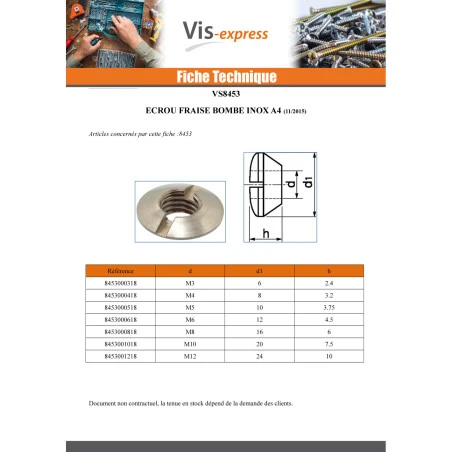 UGS : DMLZL 43451 Catégories : Ecrou, Écrou FRAISES BOMBES Inox A4