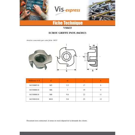 | Sous famille de produit | Ecrou Griffe |