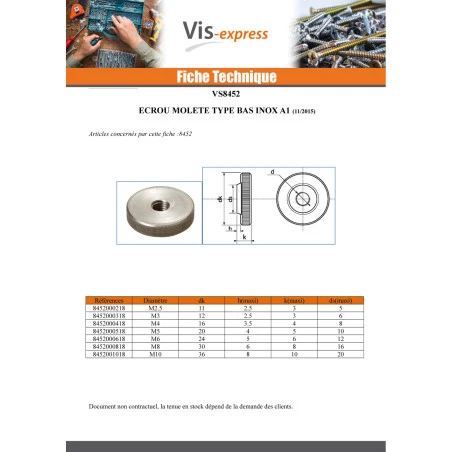 UGS : DMLZL 42453 Catégories : Ecrou, Écrou Moletée, ECROUS MOLETES TYPE BAS INOX A1