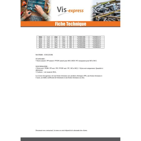 UGS : DMLZL 34629 Catégories : Écrou Nylon Hexagonal HU, GAMME NYLON OU POLYETHYLENE