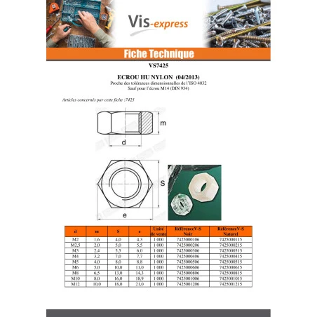 UGS : DMLZL 34621 Catégories : Écrou Nylon Hexagonal HU, GAMME NYLON OU POLYETHYLENE