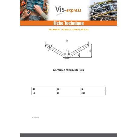 UGS : DMLZL 380429 Catégories : Ecrou, Écrou à Oreilles Inox A4 DIN 80701, Écrou Oreilles