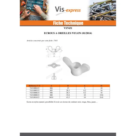 UGS : DMLZL 34648 Catégories : Écrou Oreilles Nylon, GAMME NYLON OU POLYETHYLENE