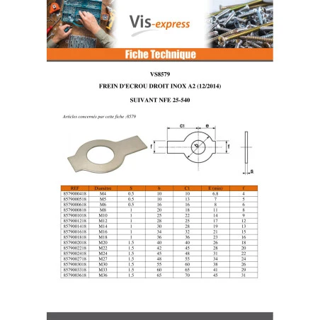 UGS : DMLZL 41855 Catégories : Frein D Écrou DROIT Inox A2 NFE25-540, Rondelle, Rondelle de sécurite et resort