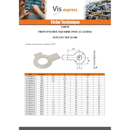 Frein D Ecrou Equerres De Diamètre M6 Inox A2 Autre références : 3617501312715