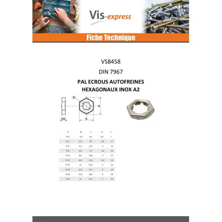 UGS : DMLZL 52329 Catégories : Ecrou, Ecrou autobloquant, Écrou frein tout metal, Pal écrous autofreinés hexagonaux Inox A2 DIN7967