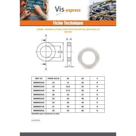 UGS : DMLZL 383159 Catégories : Rondelle, Rondelle CONSTRUCT Métallique Inox A4 DIN 7989 DIN7989-VS8589, Rondelle plate