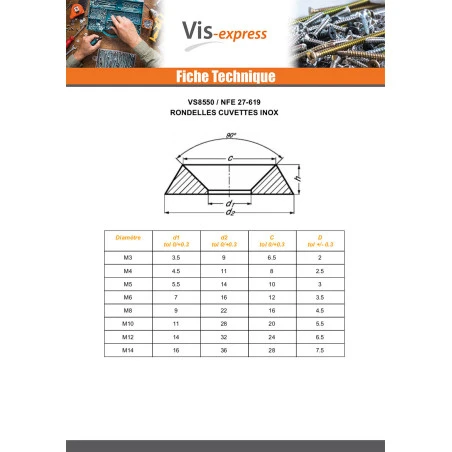 Rondelle cuvette Pleine Inox A2 M14 Autre références : 6251914