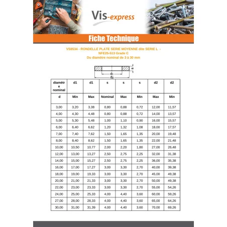 UGS : DMLZL 19941 Catégories : Rondelle, Rondelle plate, Rondelle Plate L Inox A2 NFE 25513,VS-NFE25513 GRADE C, Rondelle Plate Série L (Large)