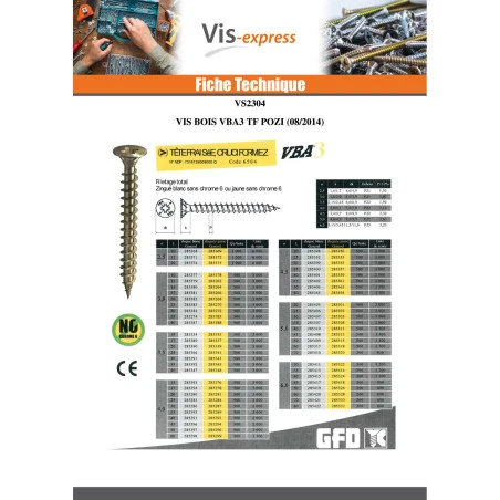VBA3 Tête fraisée TF Pozi 4X25 Acier laitonne Autre références : 3617501111387 81641