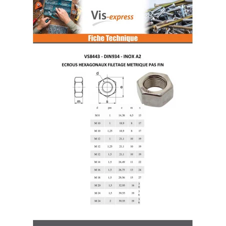 | Norme | DIN 934 |