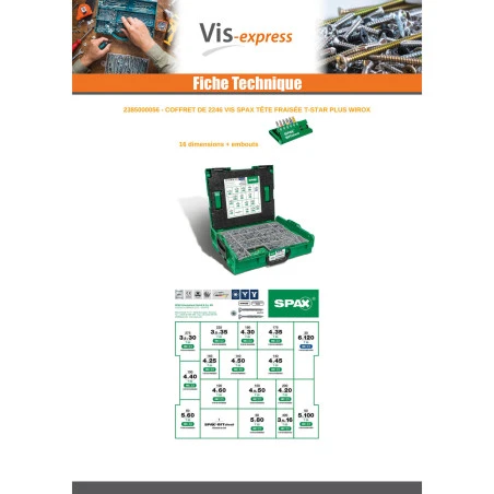 Assortiment de 2446 Spax Tête fraisée TF T+STAR+ WIROX Autre références : 5000009161019