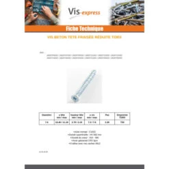 1 X Vis Béton Tête Fraisée TF Réduite 7.5X52 TORX T30 Acier Zingué